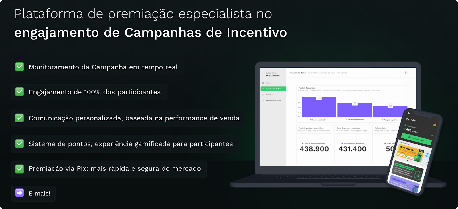 Para engajar seus vendedores, muitas marcas operam com campanhas de incentivo, pontuando e premiando os colaboradores que vendem recorrentemente seus produtos e serviços. No artigo a seguir você lerá sobre o desenvolvimento de um produto digital chamado Receba, uma plataforma de resgate e distribuição de recompensas e o case de sucesso com o Banco PAN.