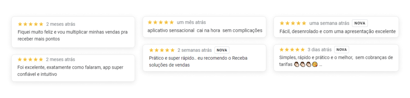 Até o final de 2023, mais de 9 mil vendedores já haviam utilizado a plataforma Receba para resgatar seus incentivos e foram recebidas mais de 480 avaliações orgânicas no Google, sendo 100% delas avaliações com 5 estrelas.